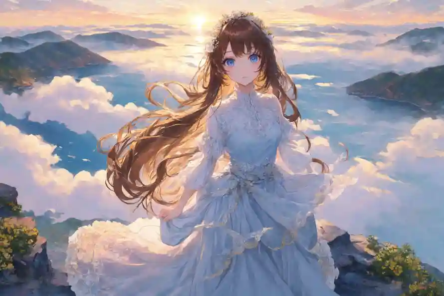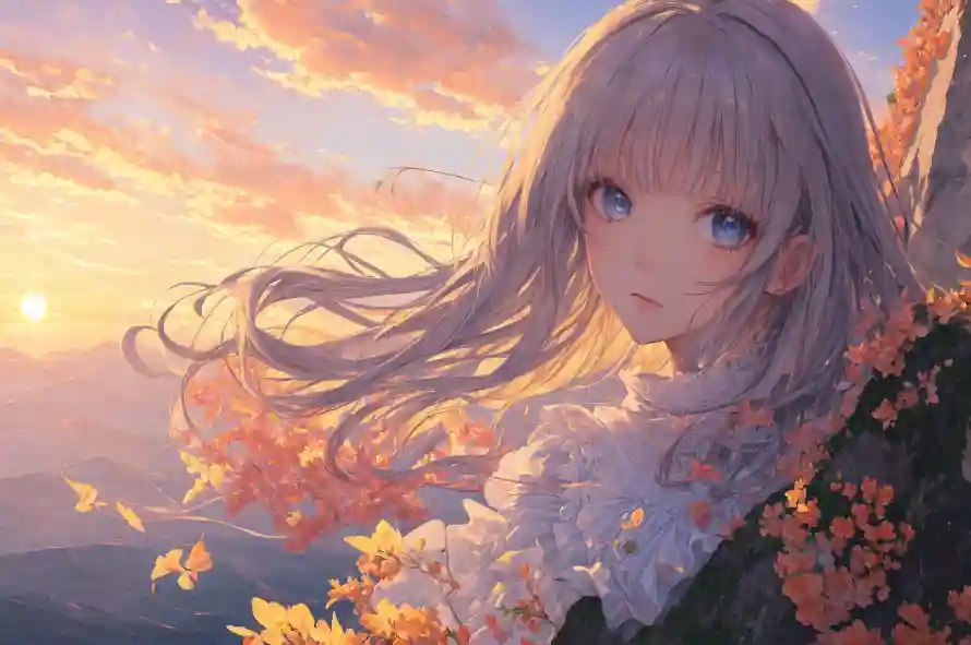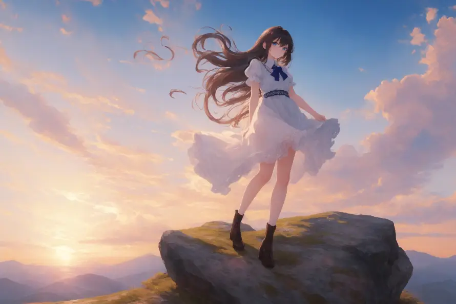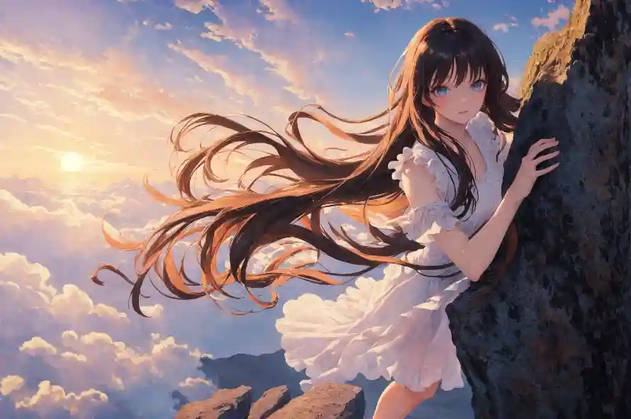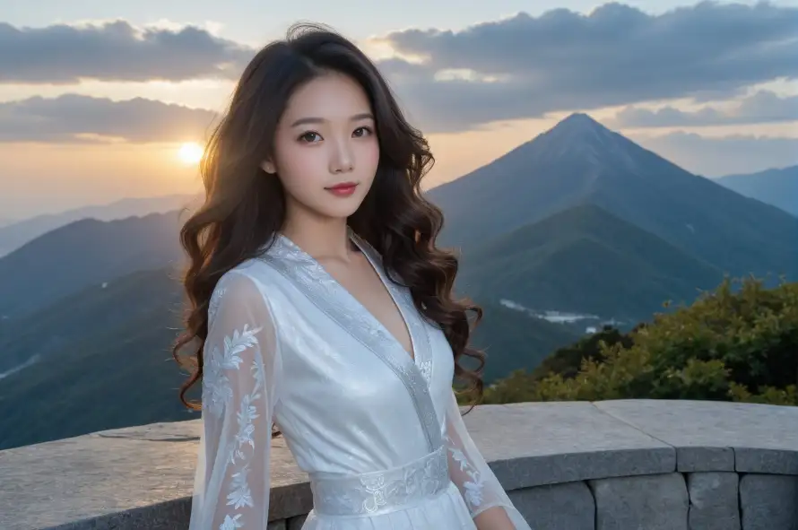 美女映晚霞