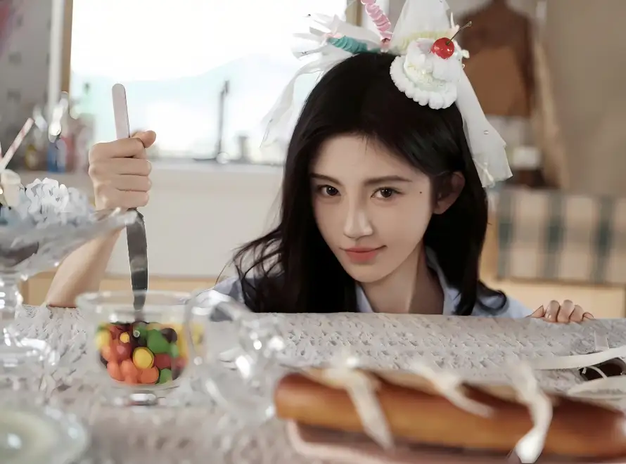 室内彩色糖豆明星甜点美女蛋糕装饰鞠婧祎