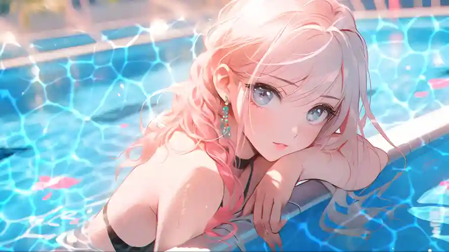 3k少女壁纸|泳池背景图片 - 夏日清凉「哲风壁纸」