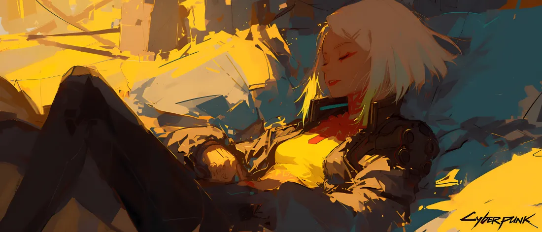 5k赛博黄昏壁纸|躺卧人物背景图片 - 科幻光影「哲风壁纸」