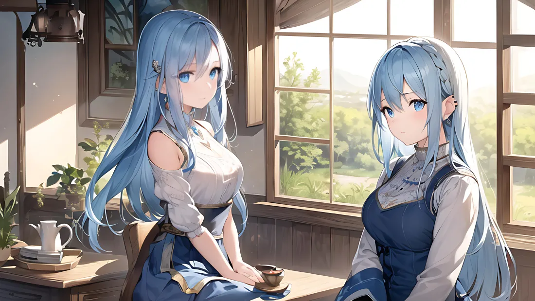 安静安静少女少女房间背景窗边少女美丽美丽少女蓝发少女餐桌餐桌场景