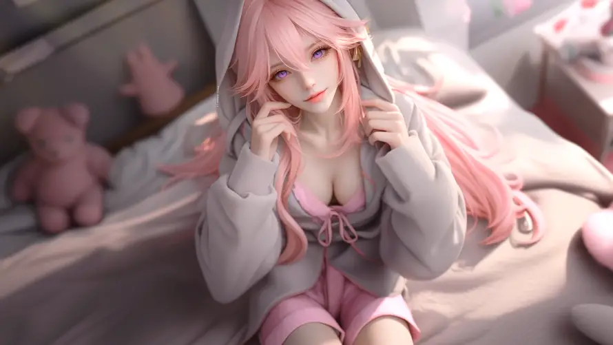 2k神子壁纸|绯色氛围背景图片 - 粉色长发少女「哲风壁纸」