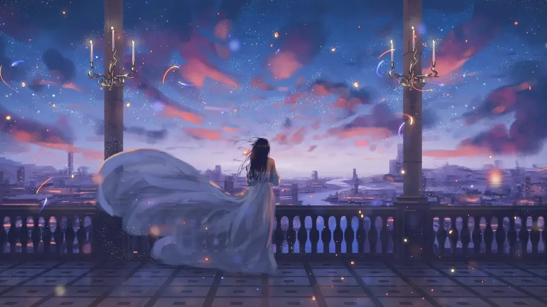 2k少女壁纸|夜空阳台背景图片 - 二次元「哲风壁纸」