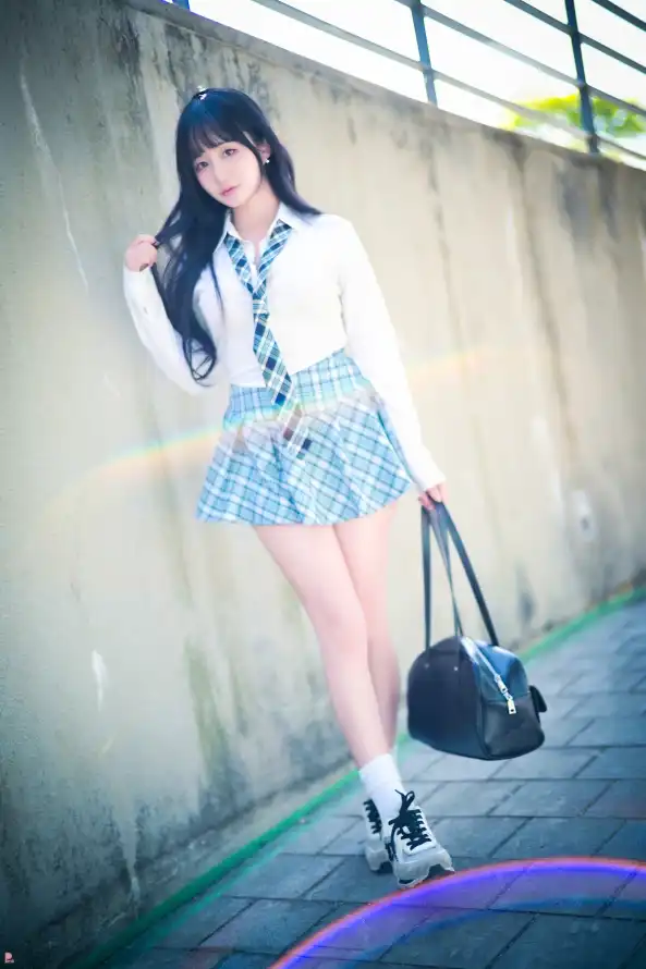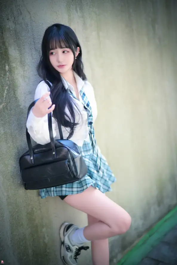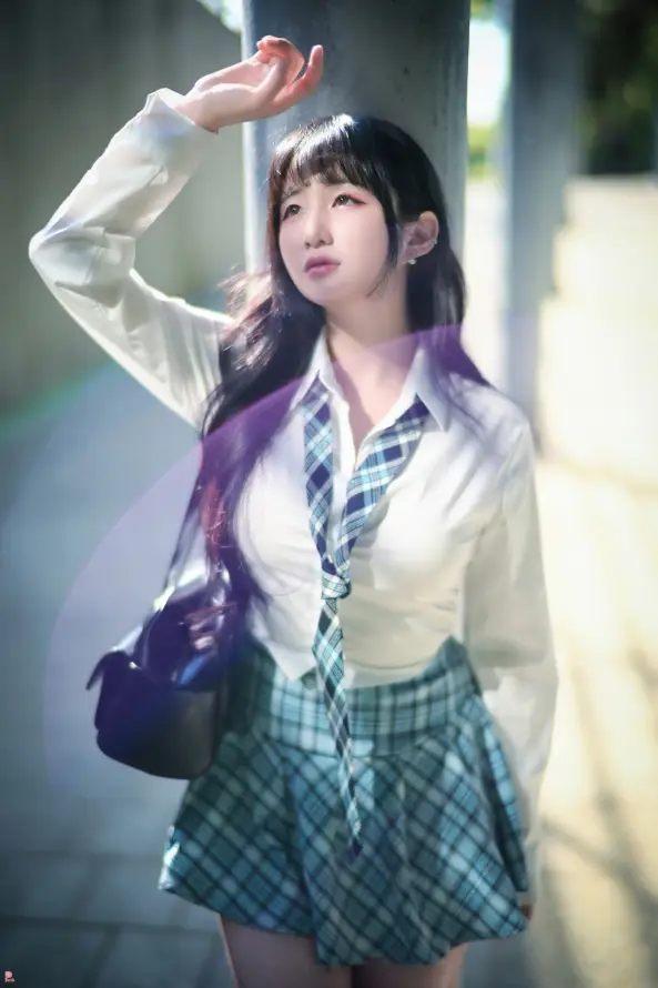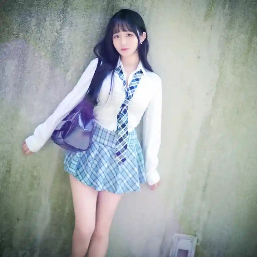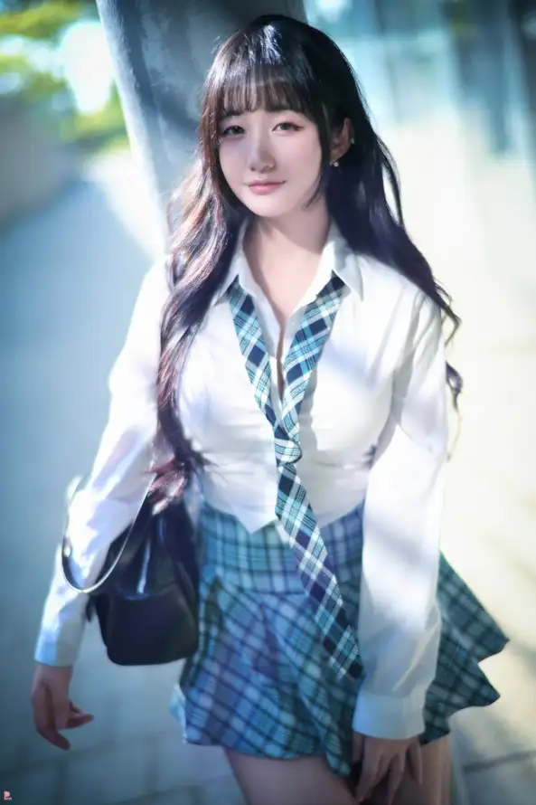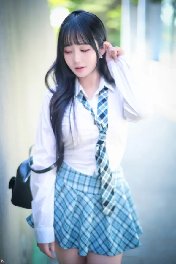 韩国美女,长发,格子裙子,美女写真