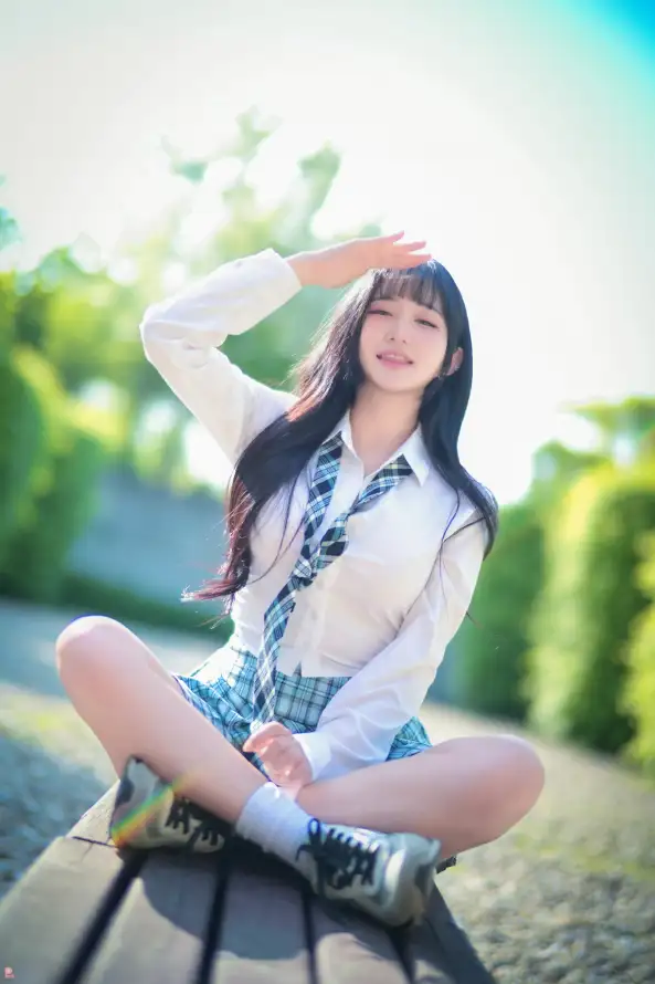 韩国美女,长发美女,格子裙子美女。