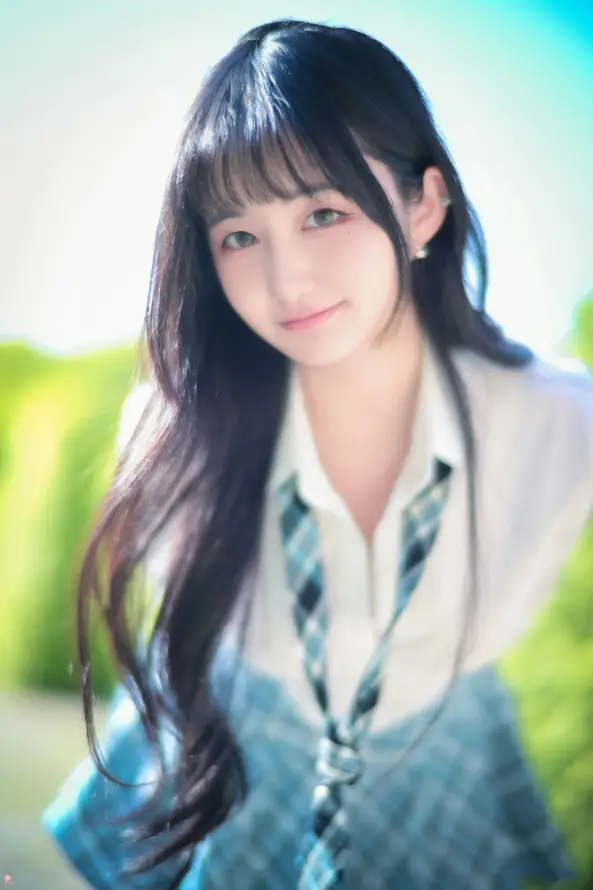 户外,长发美女,格子裙子。。