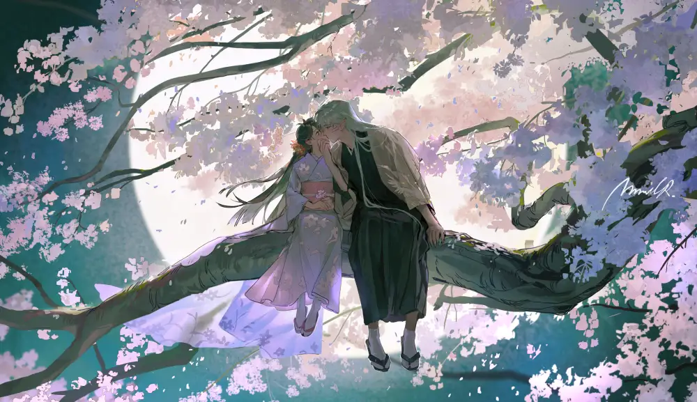 动漫角色巫女服月夜白龙桔梗森林夜景犬夜叉红伞