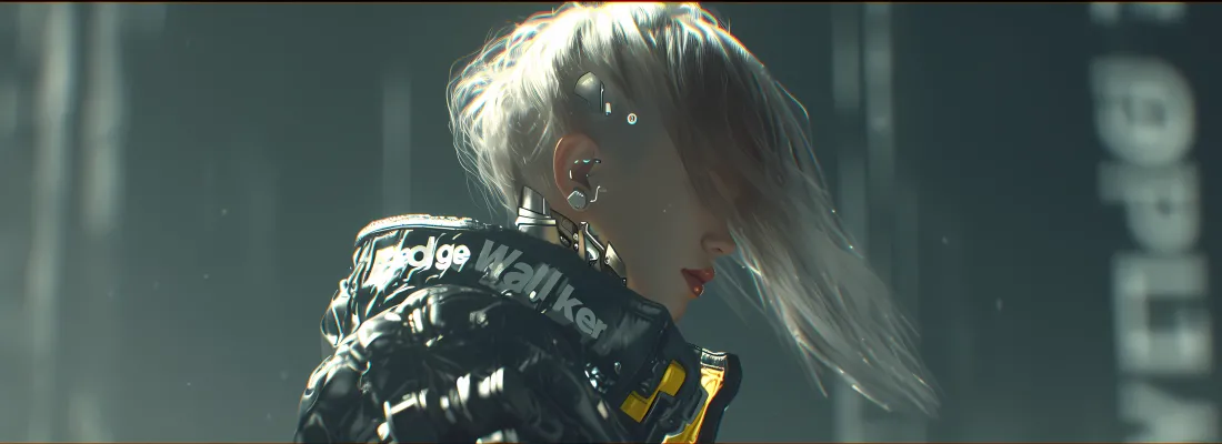 夜景少女数字艺术未来都市潮流穿搭科幻风格美女赛博朋克银发少女霓虹灯光
