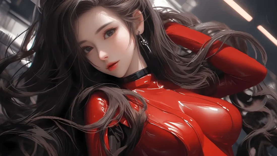 2k酷飒美女壁纸|红色紧身皮衣背景图片 - 个性「哲风壁纸」