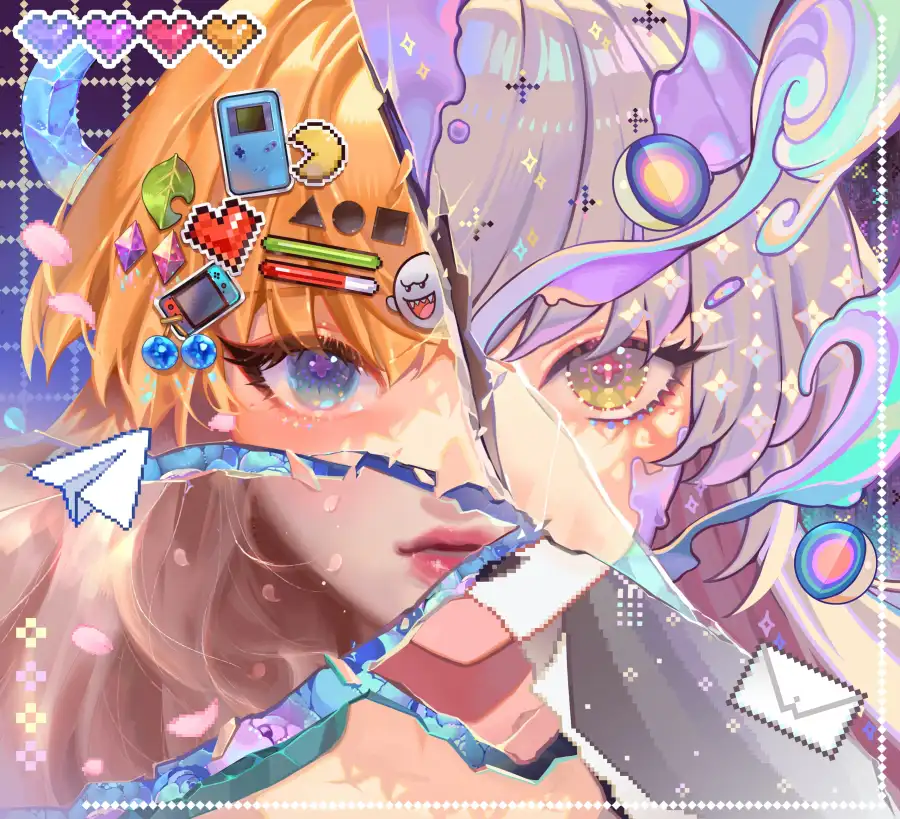 任天堂开关创可贴动漫女孩回头看崩坏:星轨布洛妮娅·扎伊奇克手套无指手套日本动画片泡泡糖赤壁银狼(崩坏:星轨)长发问号马尾辫