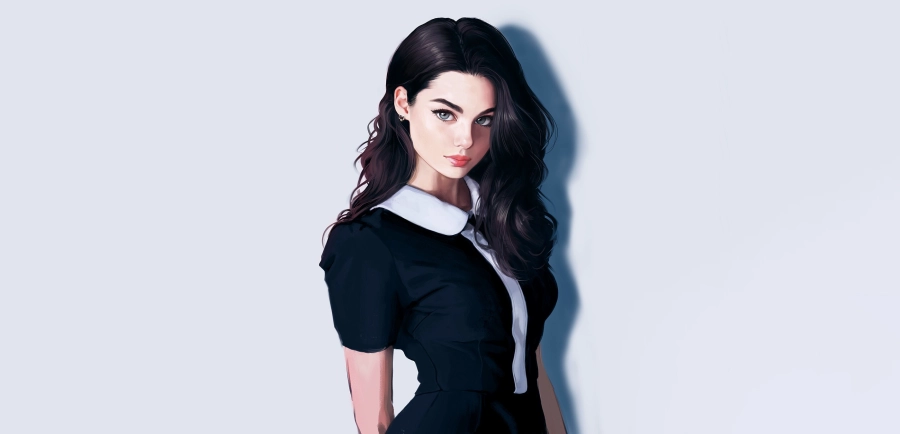 3k黑发壁纸-肖像-白色背景图片-博格达娜·卡德里茨卡娅「哲风壁纸」