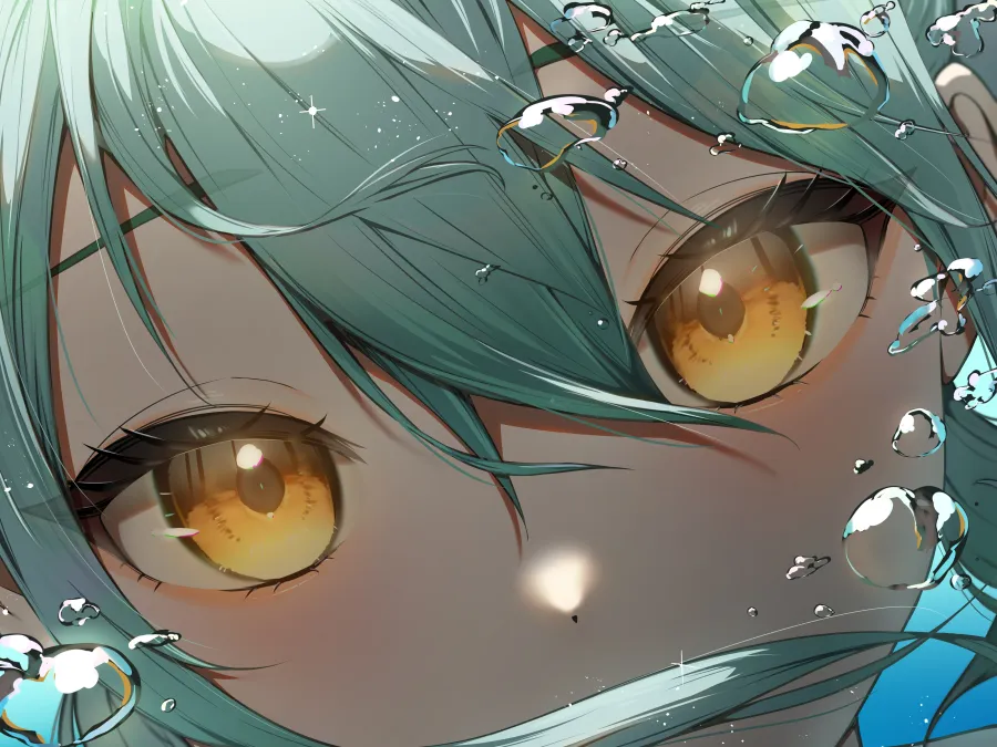 4k特写壁纸-水滴-黄眼睛图片-绿头发「哲风壁纸」