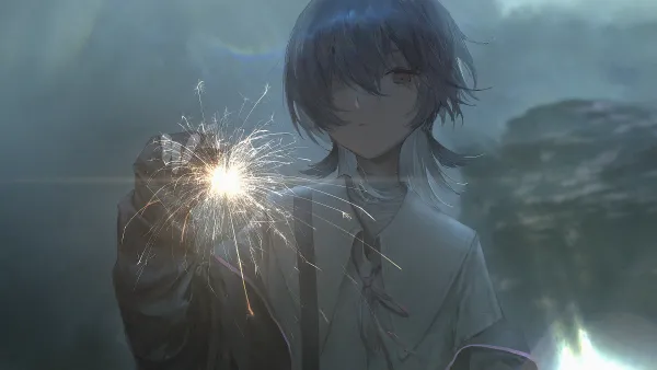 动漫女孩华明眨眼日本动画片树猫芸汐落叶路黑发