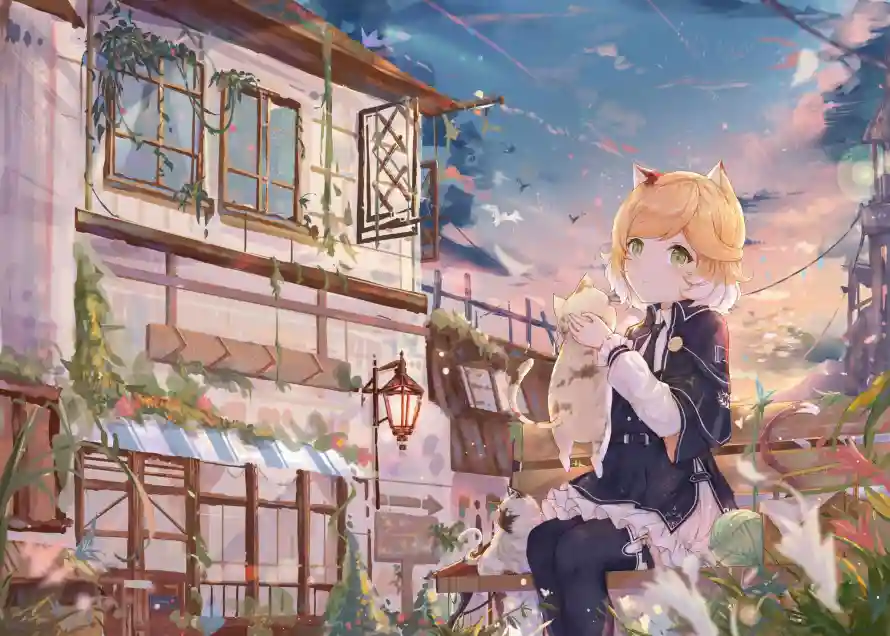 云城市景观天空常设幻想艺术建筑数字艺术艺术品花瓣透明面纱长发阳台
